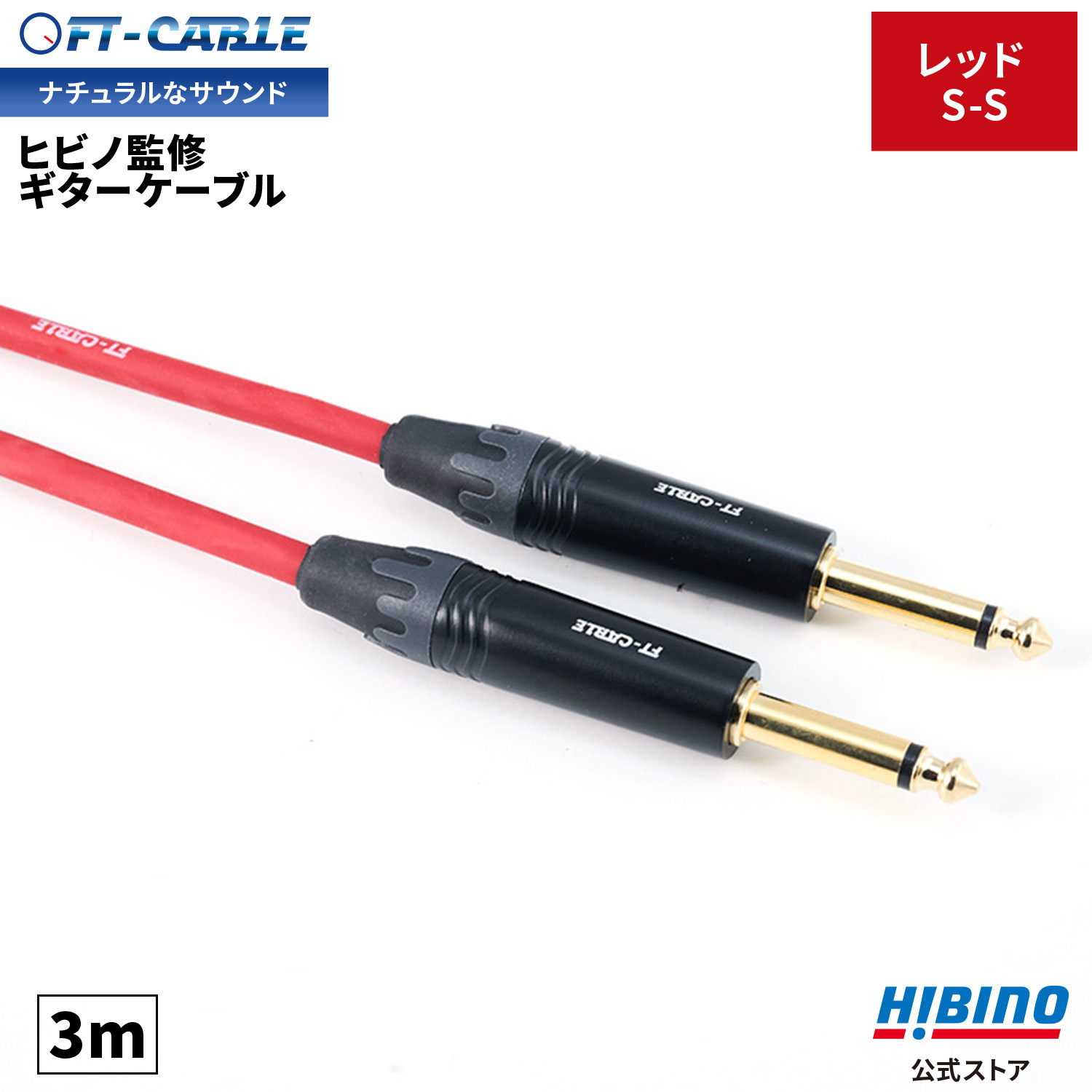 音響のプロ「ヒビノ」監修 ギターケーブル S-S レッド 赤 FT-CABLE 3m | ギターシールド 楽器ケーブル エレキギター ギター ベース キーボード アンプ 接続 SS OFC FTケーブル FS-MPB-MPB-RD シールドケーブル ケーブル ベースシールド オーディオケーブル