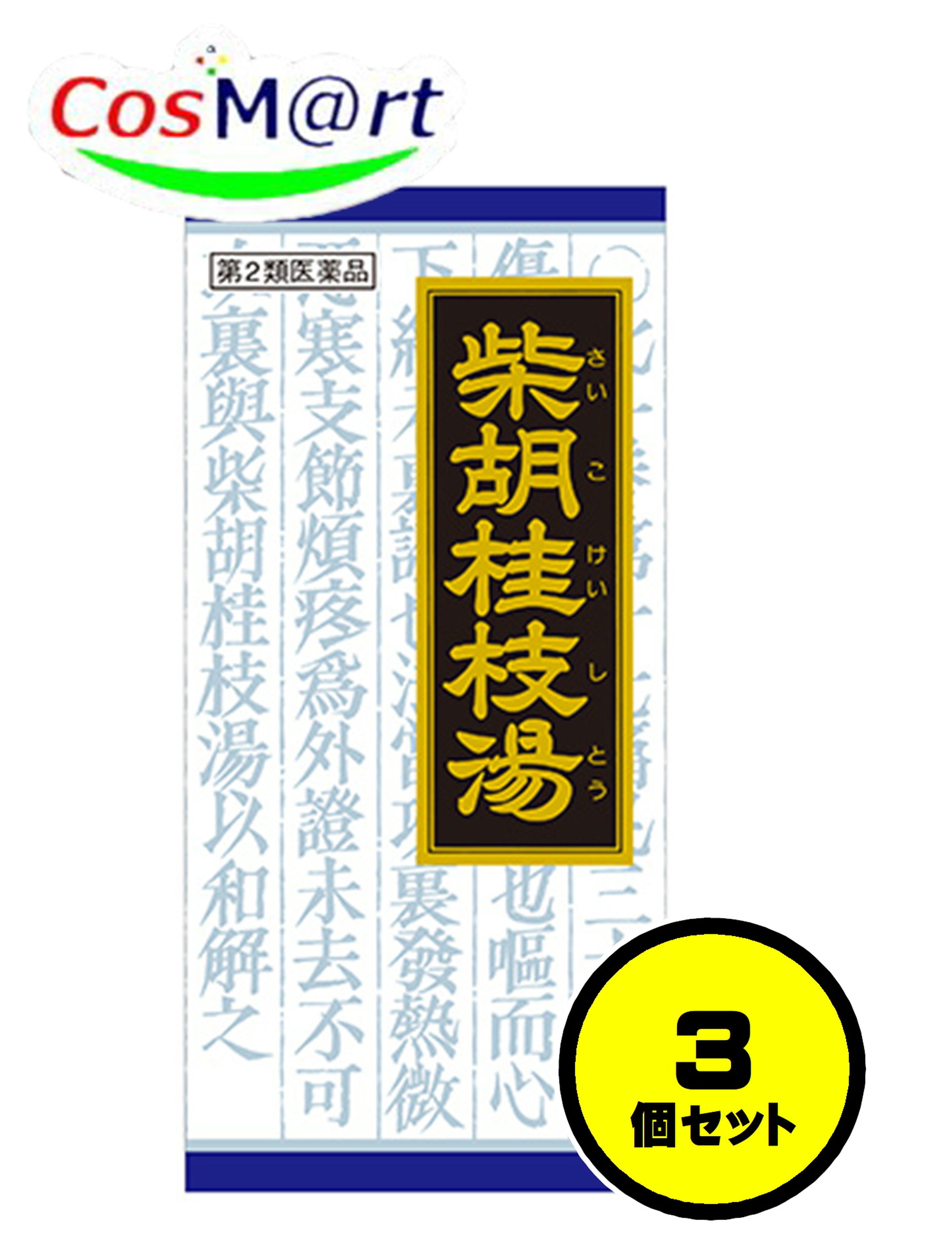 | 【成分・分量】 | 成人1日の服用量3包(1包1.0g)中 柴胡桂枝湯エキス(1/2量)・・・2,000mg (サイコ2.5g、ハンゲ2.0g、ケイヒ1.25g、シャクヤク・オウゴン・ニンジン・タイソウ各1.0g、カンゾウ0.75g、ショウキョウ0.25gより抽出。) 添加物として、ヒドロキシプロピルセルロース、乳糖を含有する。 |