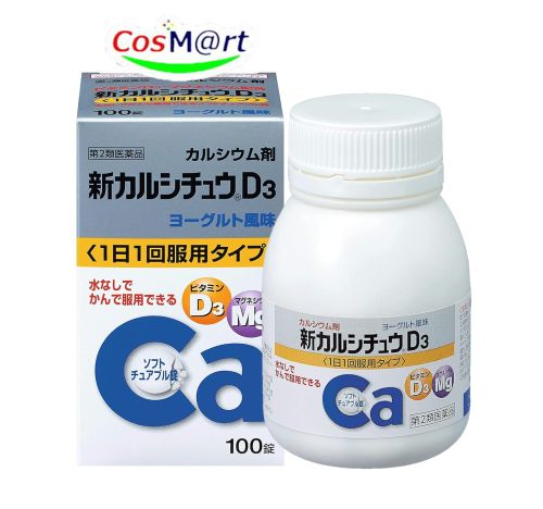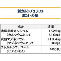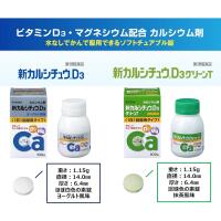 | 【特徴】 | ビタミンD3・マグネシウム配合 カルシウム剤 1.1日1回、2錠(15歳以上)で、カルシウム 610mgが摂れます。 2.カルシウムの吸収を促進するビタミンD3、さらにマグネシウムを配合しています。 3.服用しやすい、かみくだけるソフトチュアブル錠。水なしでそのまま服用できます。 4.さわやかなヨーグルト風味です。 |