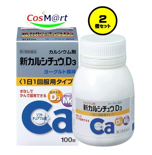 | 【特徴】 | ビタミンD3・マグネシウム配合 カルシウム剤 1.1日1回、2錠(15歳以上)で、カルシウム 610mgが摂れます。 2.カルシウムの吸収を促進するビタミンD3、さらにマグネシウムを配合しています。 3.服用しやすい、かみくだけるソフトチュアブル錠。水なしでそのまま服用できます。 4.さわやかなヨーグルト風味です。 |