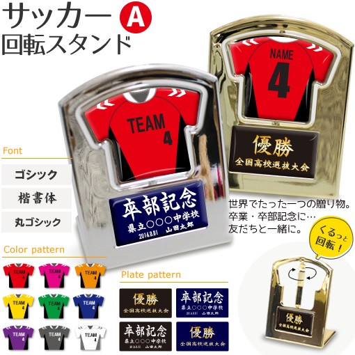 サッカー 【〇 回転スタンド 】【〇 Aタイプ】盾 名入れグッズプレゼント 卒業記念品 卒部記念品 卒団記念品 部活