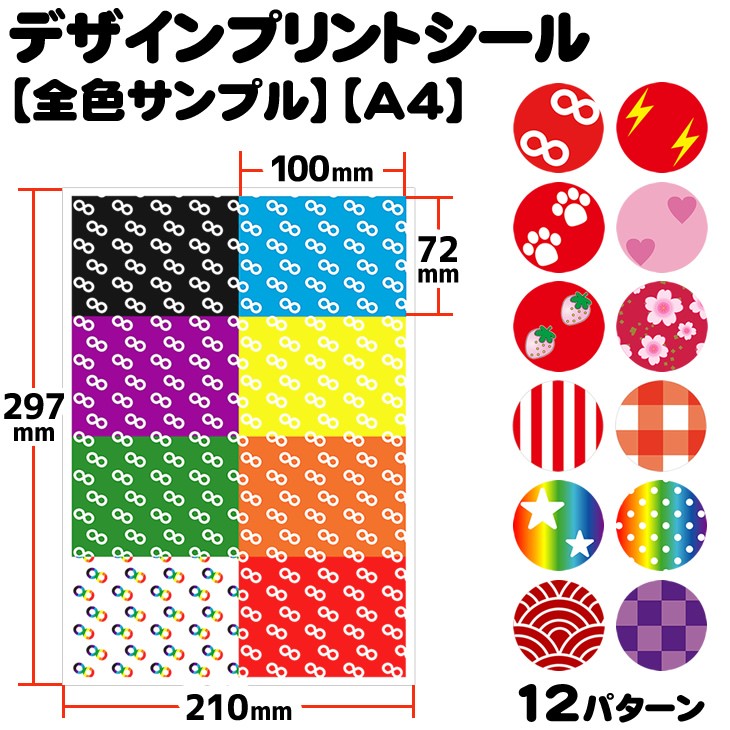 全8色をA4サイズに収めたお試し用サンプルシールです。
