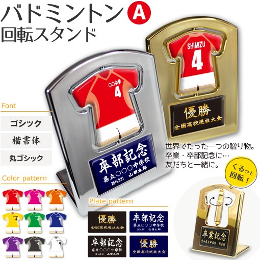 バドミントン 【〇 回転スタンド 】 【〇 Aタイプ】盾 名入れ バドミントングッズプレゼント 卒業記念品 卒部記念品 卒団記念品 部活