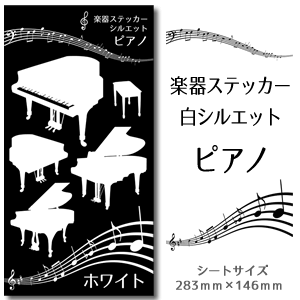 【 ピアノ 】 楽器 ステッカー 【 □ シルエット 白 】 シール 吹奏楽 オーケストラ 楽器ケース 楽譜 オリジナル
