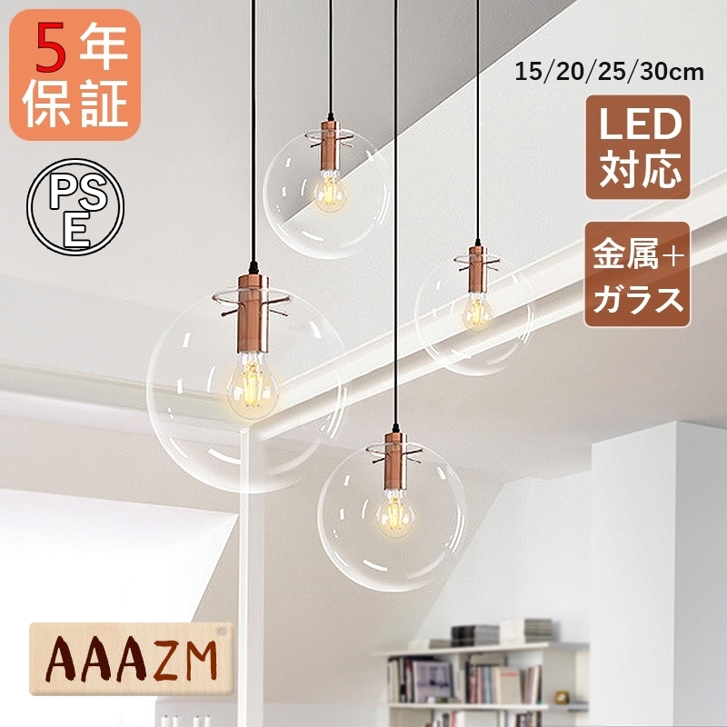 AAAZM ペンダントライト 北欧 ガラス 丸型 ボール おしゃれ LED電球 和風 天井照明器具 明るい シンプル ダイニング キッチン リビング 玄関 食卓 吊下げランプ