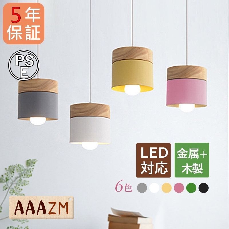 AAAZM ペンダントライト 北欧 おしゃれ LED電球 円筒形 木製 マカロン 木目 和風 天井照明器具 工事不要 キッチン ダイニング 食卓 ダクトレール 吊り下げランプ