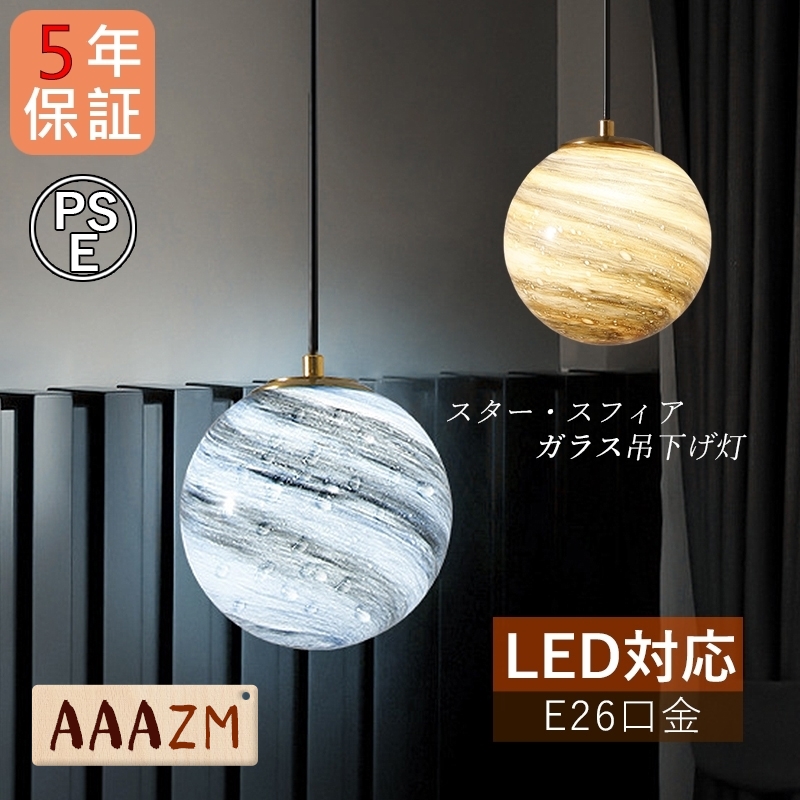 AAAZM ペンダントライト 北欧 ガラス おしゃれ 丸型 星 月 LED電球 木星 ボール レトロ 天井照明器具 子供 リビング ダイニング キッチン インテリア シンプル