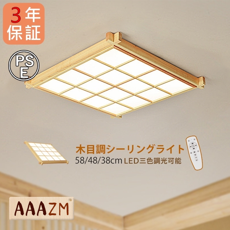 サイズ:38*38*5cm / パワー:18W 調色とリモコン調光は36W / 適用空間:3~6畳 48*48*5cm / パワー:27W 調色とリモコン調光は54W / 適用空間:5~8畳 58*58*5cm / パワー:36W 調色とリモコン調光は72W / 適用空間:8~12畳
