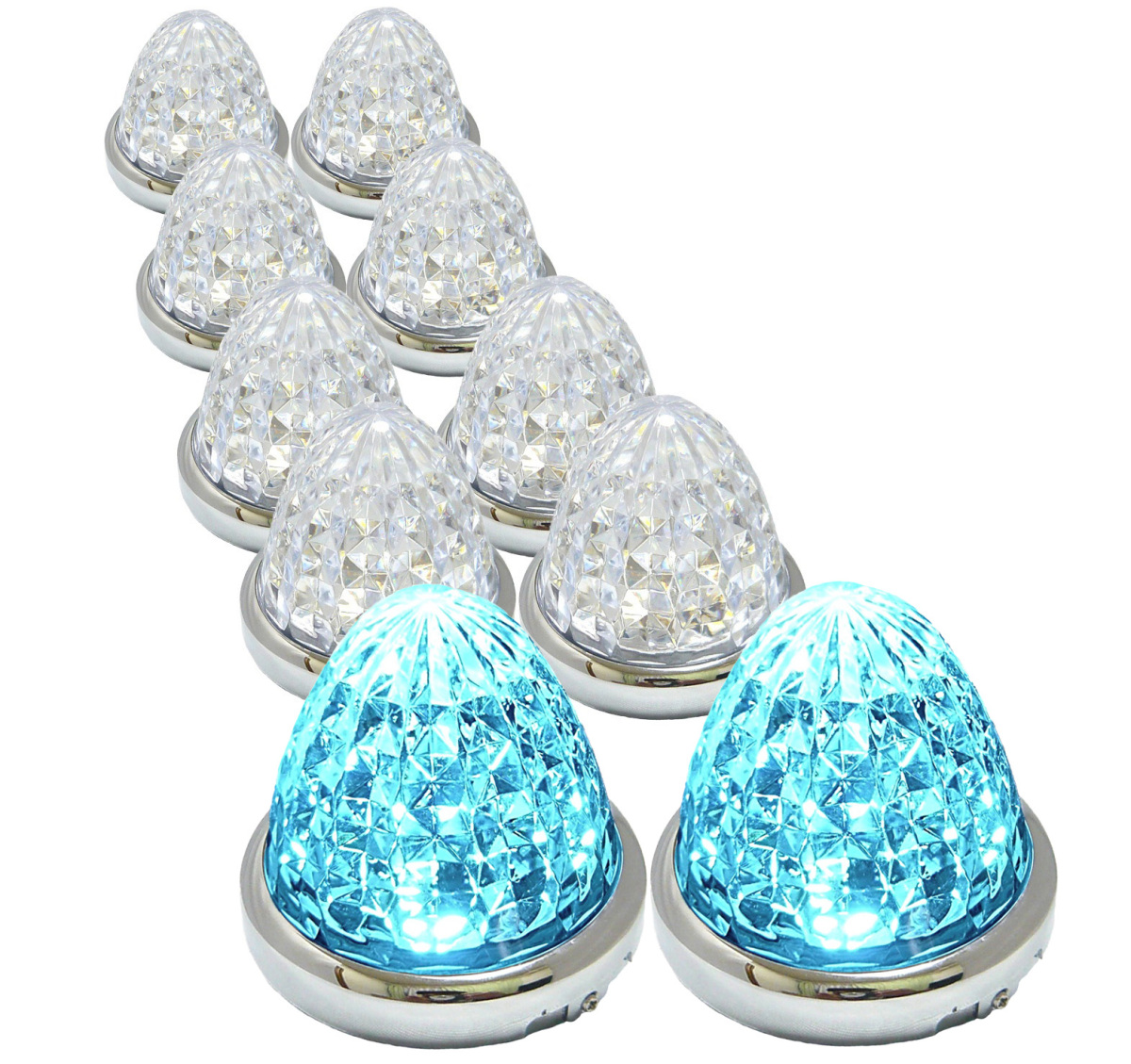 24V トラック用 LED マーカーランプ サイド マーカー 8面クリスタルカット仕様 16LED 汎用 10個 セット アイスブルー 特注色