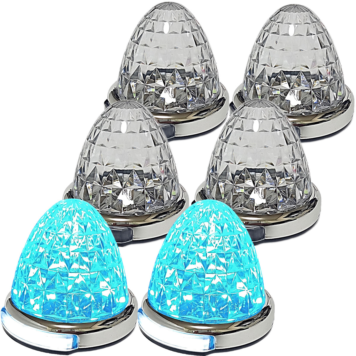 12V 24V トラック用 LED マーカーランプ 路肩灯機能付 サイド マーカー メッキリング 5面クリスタルカット仕様 22LED 汎用 アイスブルー 6個セット