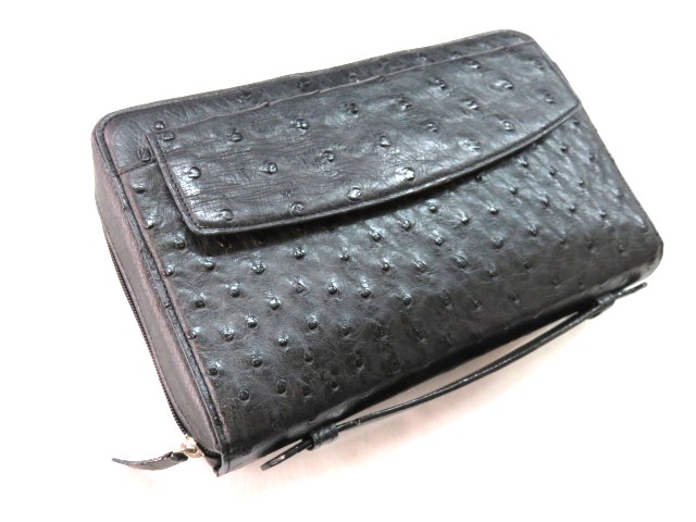 MK 本物 オーストリッチ セカンドバッグ サブバッグ 22.5cm ブラック レザー本革 メンズバッグ 男性用鞄