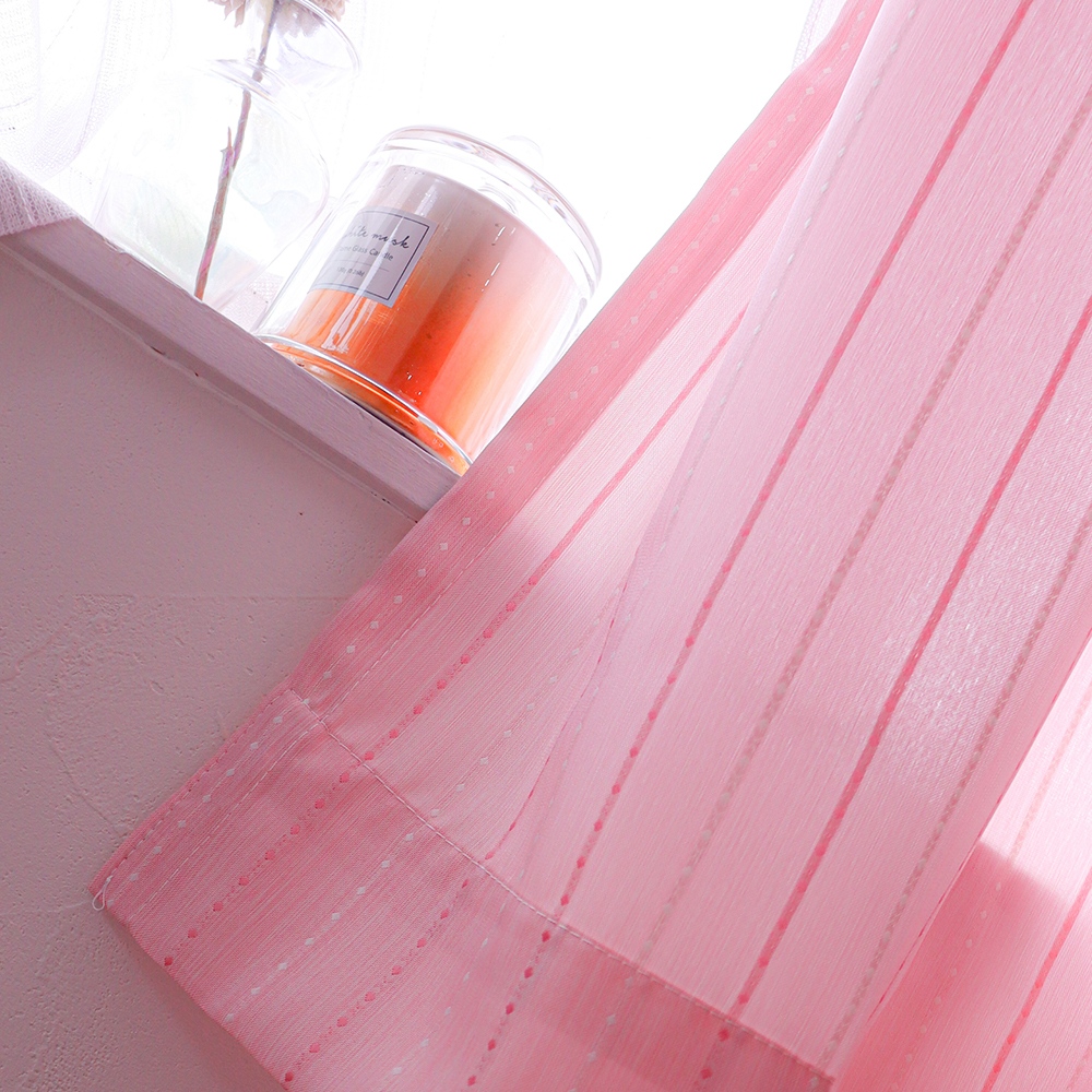 ドレープ 非遮光 カーテン レース4枚セット ドット ストライプ 柄 幅100cm×丈135cm 4枚組 ピンク カーテンフック取り付け済み