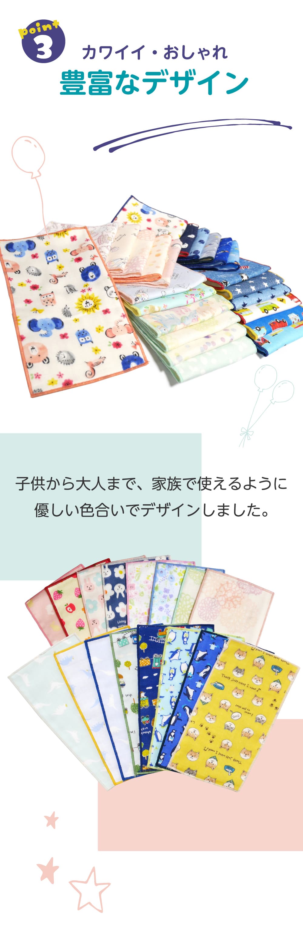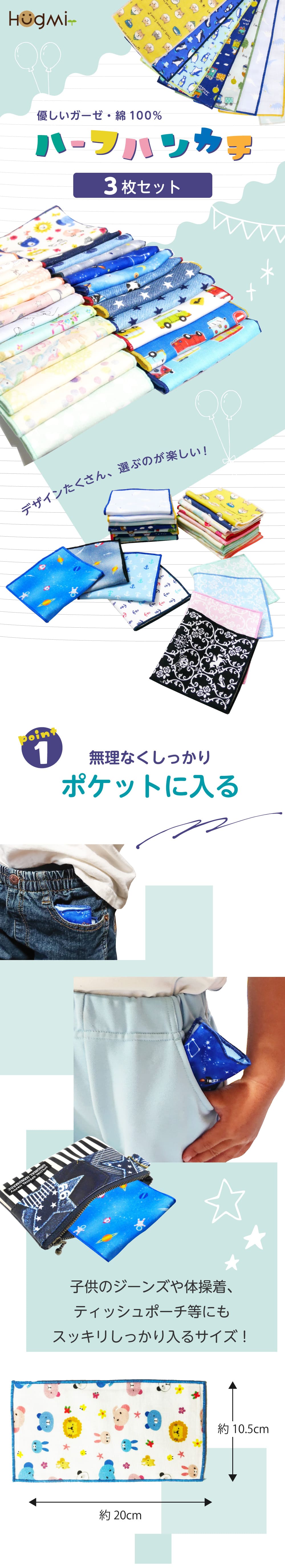 3枚セット ハーフハンカチ 綿100% 6重 ガーゼ 子供 キッズ 男女兼用 ふんわり 柔らか 日本製