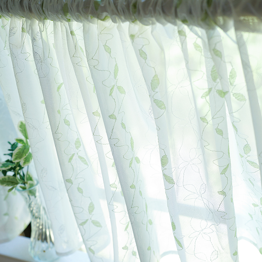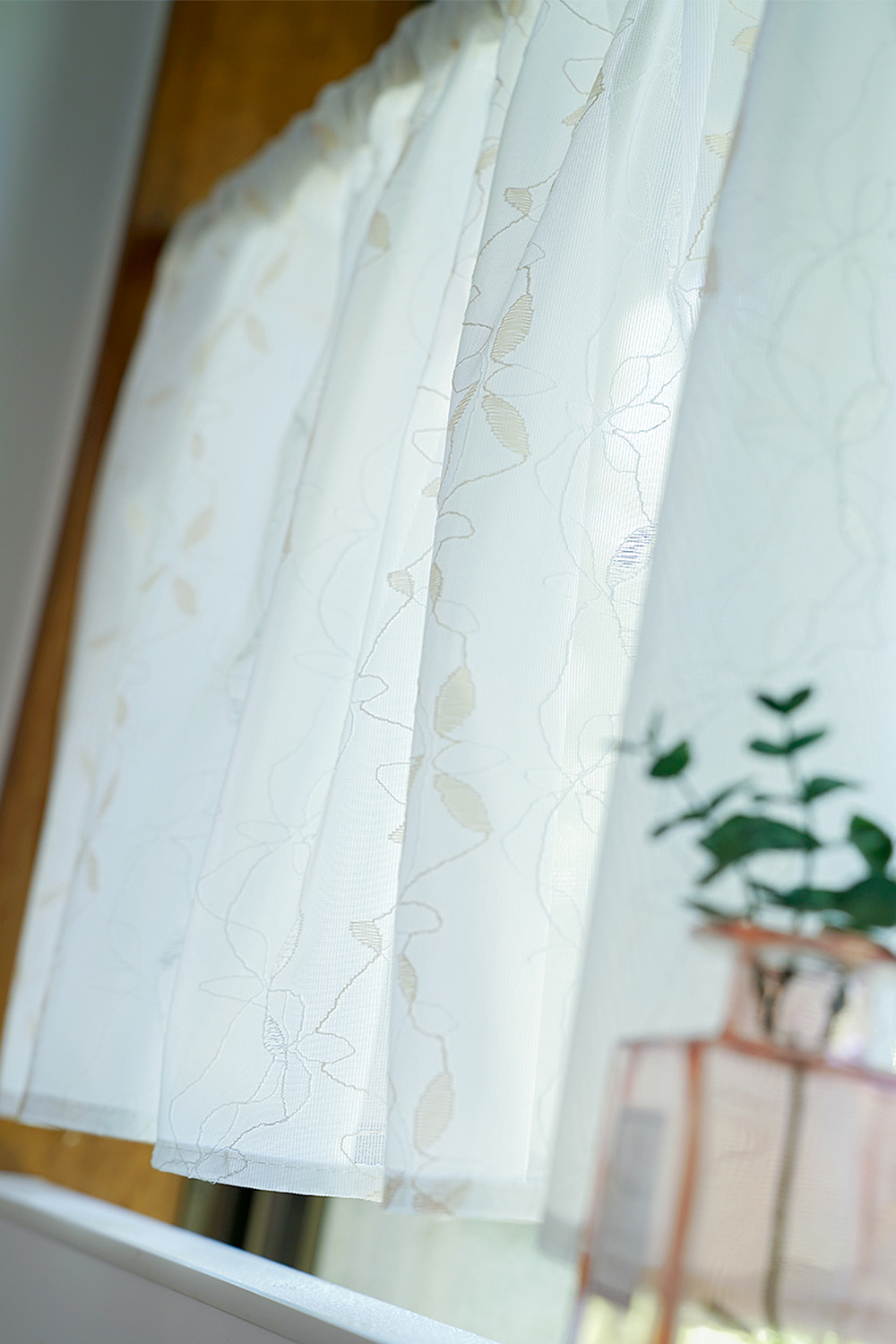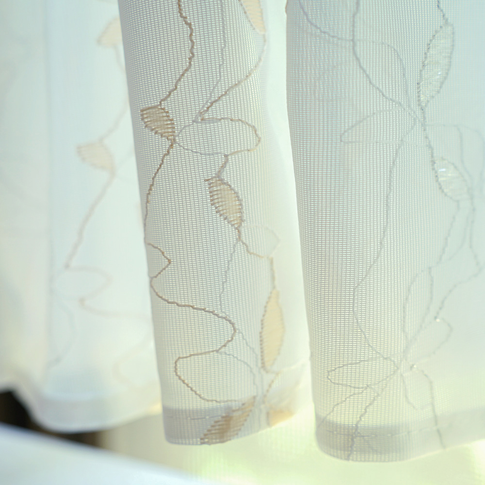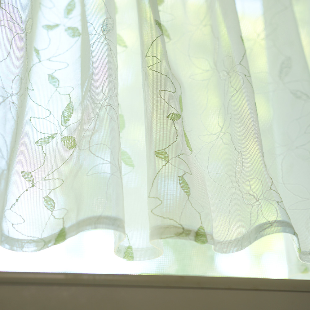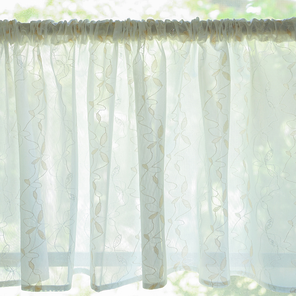 カフェカーテン 幅145cm×丈45cm 1枚 ジャガード織 リーフ柄 小窓用 目隠し おしゃれ 既製サイズ キッチン トイレ 居間 小さい窓 小窓カーテン