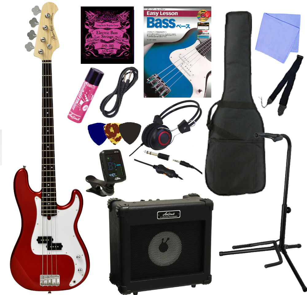 バッカス・エレキベース入門13点セット|Bacchus / BPB-1R CAR(キャンディアップルレッド) プレベタイプ ・アリアアンプも付いた初心者・完璧セット