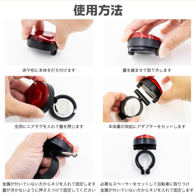 検索ワード:隠せる 反射板 エアタグホルダー 盗難対策 子供 GPS 盗難防止 リアリフレクター バイク ロードバイク 電動キックボード 追跡 後付け 小物入れ 後方 反射器 反射 自転車用 セキュリティ