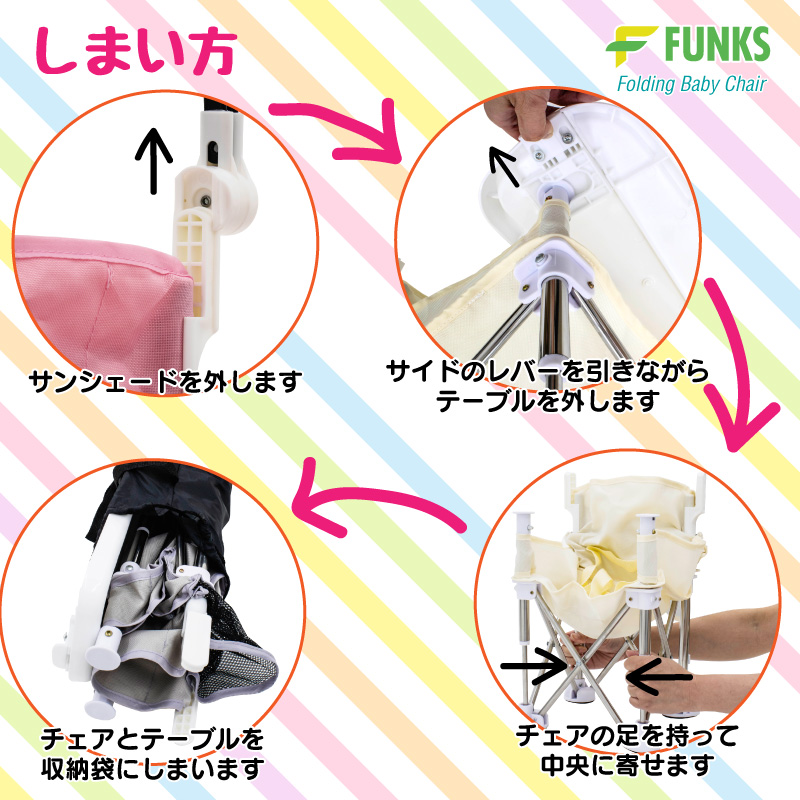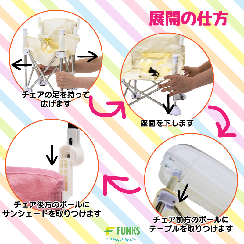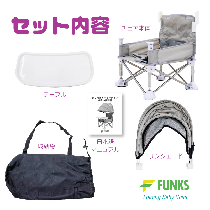 FUNKS 折りたたみベビーチェア サンシェード付き