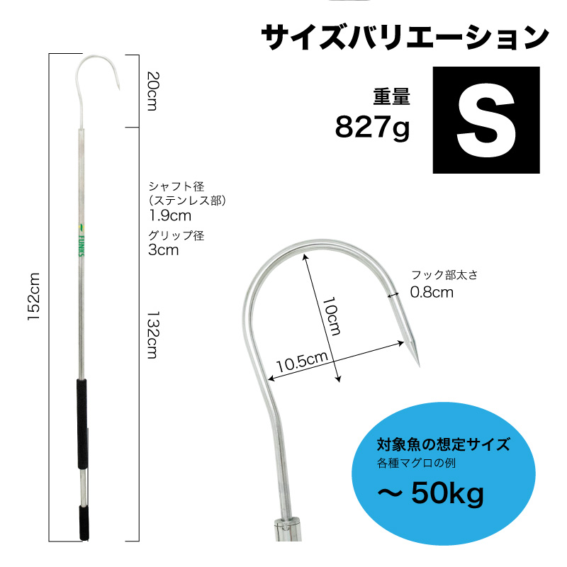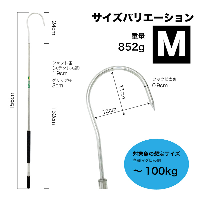 マグロ・カジキなどの大型魚対応のステンレスギャフ