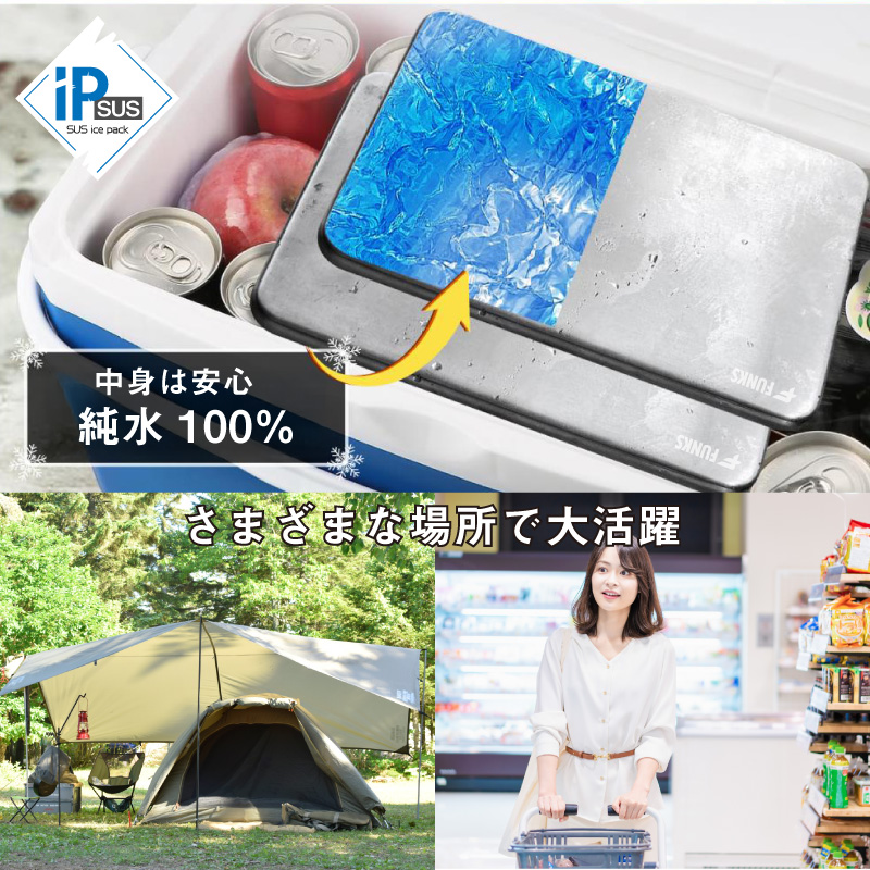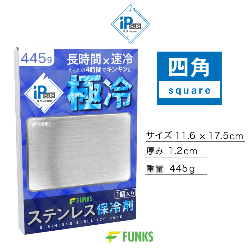 FUNKS 保冷剤 ステンレス 氷 保冷 長時間 クーラーボックス 急速冷凍 急速冷却 強力 保冷ボックス 四角1個
