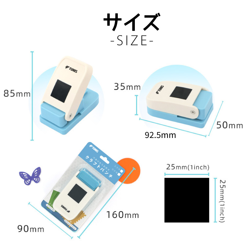 FUNKS クラフトパンチ 正方形 1インチ 穴あけパンチ スクエア 25mm スクエアパンチ 紙くず日記 ハンドメイド
