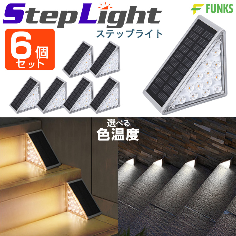 FUNKS ソーラーライト 階段 ステップライト ソーラー ソーラーステップライト 防水 屋外 階段ライト 6個入り