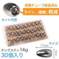 タングステン バレットシンカー TG シンカー 1/2oz 14g 徳用 30個セット 高比重 保護チューブ入り テキサスリグ ワームシンカー アジング