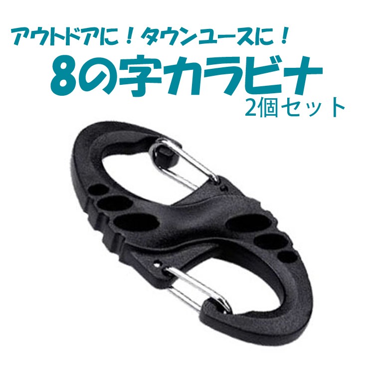 8の字カラビナ 2個セット キーホルダー アウトドア 多用途 ダブル ゲート 簡単取り付け BS002