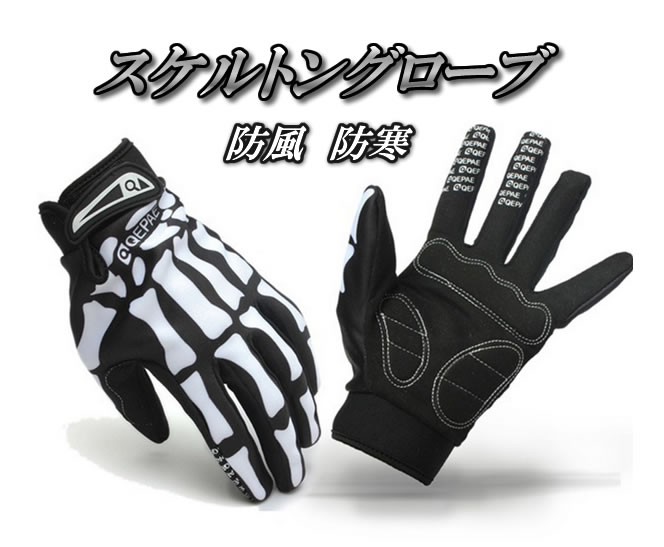 スケルトン手袋 防風防寒 バイク/自転車用 アウトドア 骨(スカル) ボーングローブ 滑り止め付き イベント ハロウィン QEP01