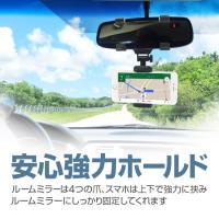 ルームミラー用車載スマホホルダー 取り付け簡単 iPhone対応 ルームミラーに挟むだけ ナビに最適 車載用 バックミラーマウントホルダー 汎用タイプ TORE400