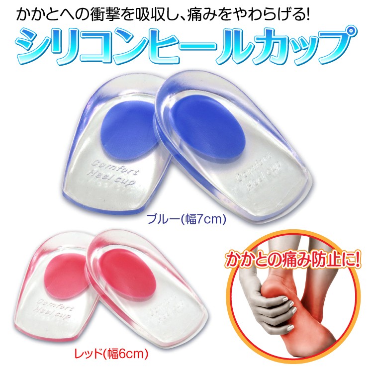 シリコンヒールカップ かかとの痛み防止に ブルー/レッド 2サイズ ソフトシリコン製 インソールクッション 衝撃緩和 立体形状 フィット感抜群 MXCA2S