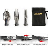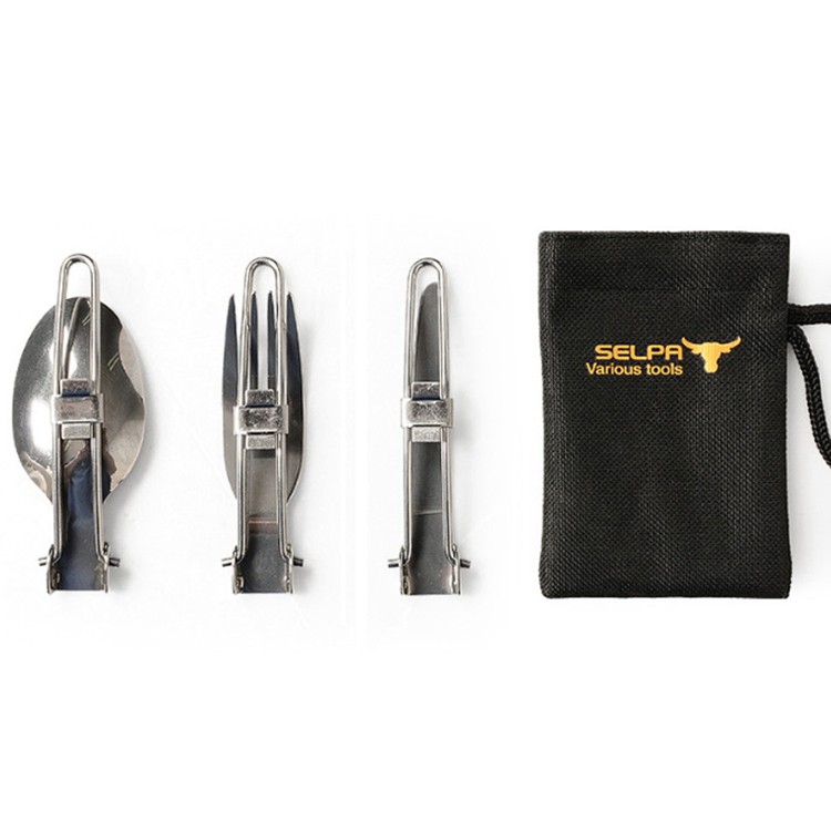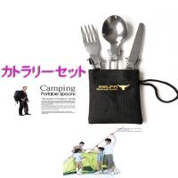 折りたたみ式テーブルナイフ×1、折り畳み式フォーク×1、折り畳みスプーン×1、収納袋×1