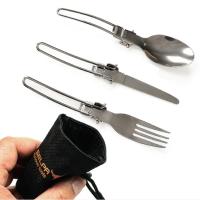 ポータブル 折りたたみ カトラリーセット ステンレス鋼 折畳ナイフ フォーク スプーン ピクニック キャンプ アウトドア 携帯用 3点セット+収納袋付き KNISET3