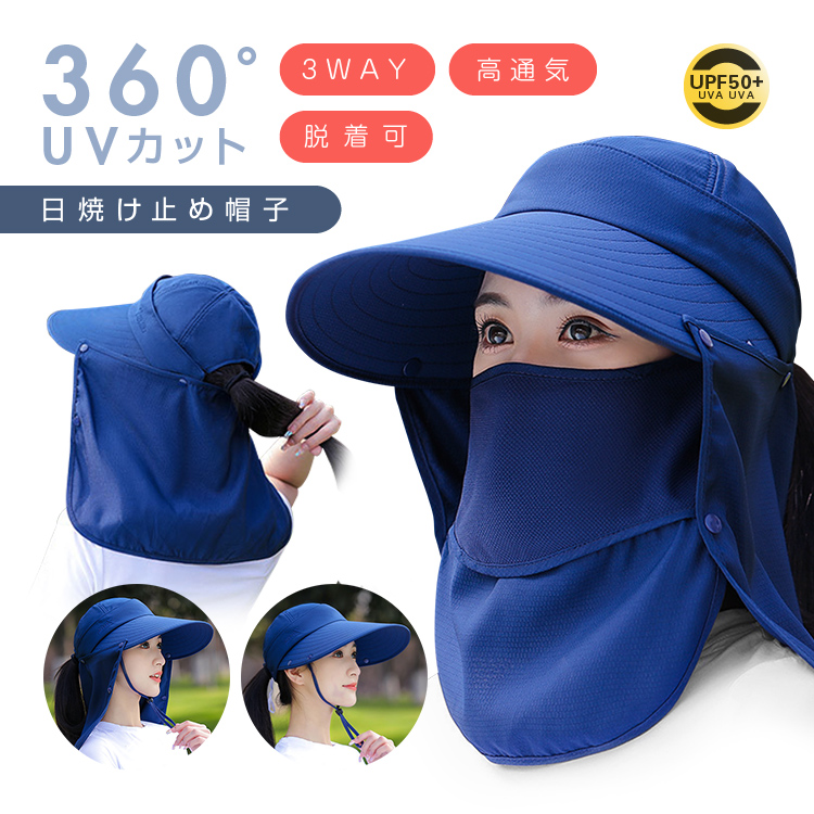 UPF帽子 日焼け止め防止 サンバイザー 日焼け止めハット フェイスカバー 野外フェス アウトドア 伸縮性 紫外線 熱中症対策 UPF50+ つば広帽子 花粉対策 UPFH5462