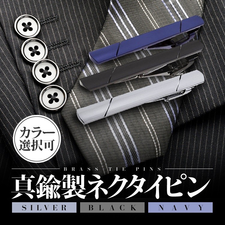 ネクタイピン 真鍮製 選べる3色 シルバー ネイビー ブラック 誕生日プレゼント 父の日 贈り物 ビジネス リクルート 結婚式に 高級感 お洒落タイピン NEKPSET1