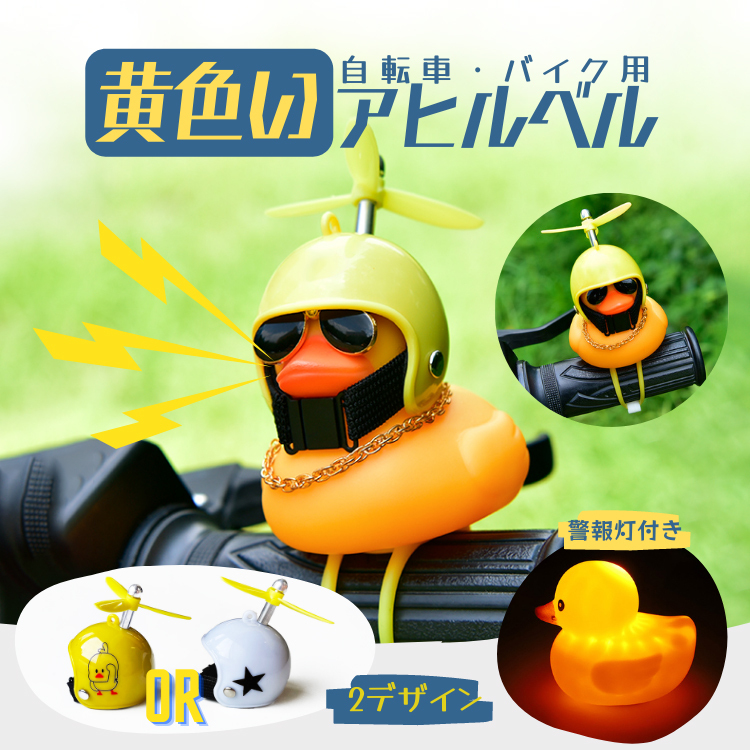 黄色アヒル 自転車ライト 可愛い 自転車ベル 音が出る ライト点滅 夜間走行に バイク 車にも ヘルメットにプロペラ付き 車内インテリア 取付簡単 XHY8688