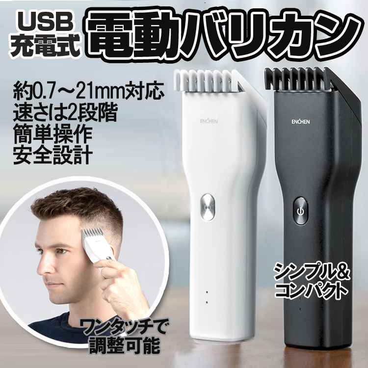 電動バリカン USB充電式 ヘアカッター ヘアークリッパー カット 散髪 Type-C急速充電 2段速度制御 安全設計 取り外し可 水洗い可 お手入れ簡単 おしゃれ ENCH142