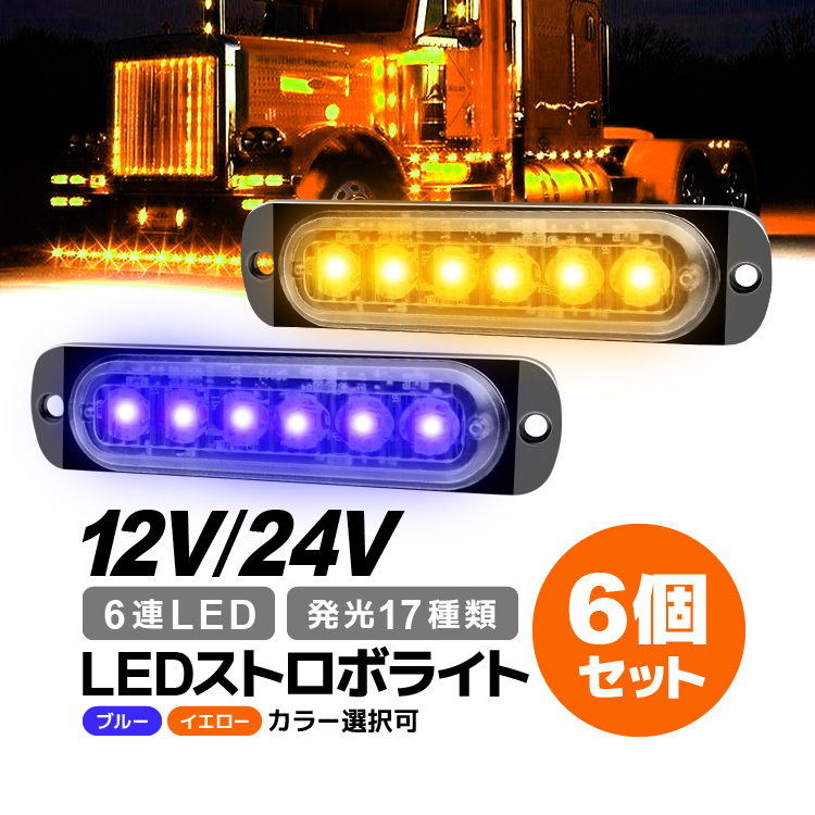 LEDストロボライト 6個セット 12V/24V対応 防水 サイドマーカー 警告灯 6連LED 18W トラック 作業車 大型車 視認性向上 事故防止に SM06LEDS6
