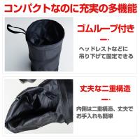 設置は簡単、ゴムループ付きなのでヘッドレスト等に吊り下げることが出来ます。