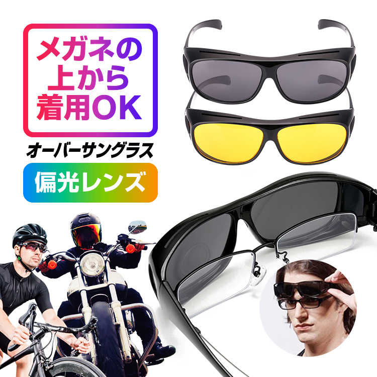 偏光オーバーサングラス メガネの上から掛けられる UV400 ブラック昼用/イエロー夜用 ドライブ/ツーリング/アウトドア/スポーツ/通勤通学などに WASG400