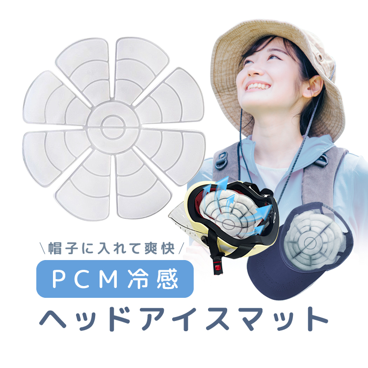 帽子やヘルメットの中に入れて頭を優しく冷やすPCM素材のヘッドアイスマットです。