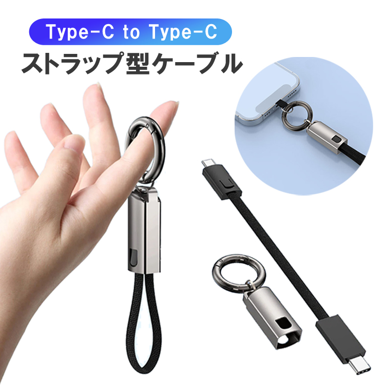Type-Cケーブル キーホルダー PD65W 急速充電対応 Type-C to Type-C スマホストラップホルダー付き 携帯便利 ストラップ PD対応ケーブル iPhone17対応 TTC65W