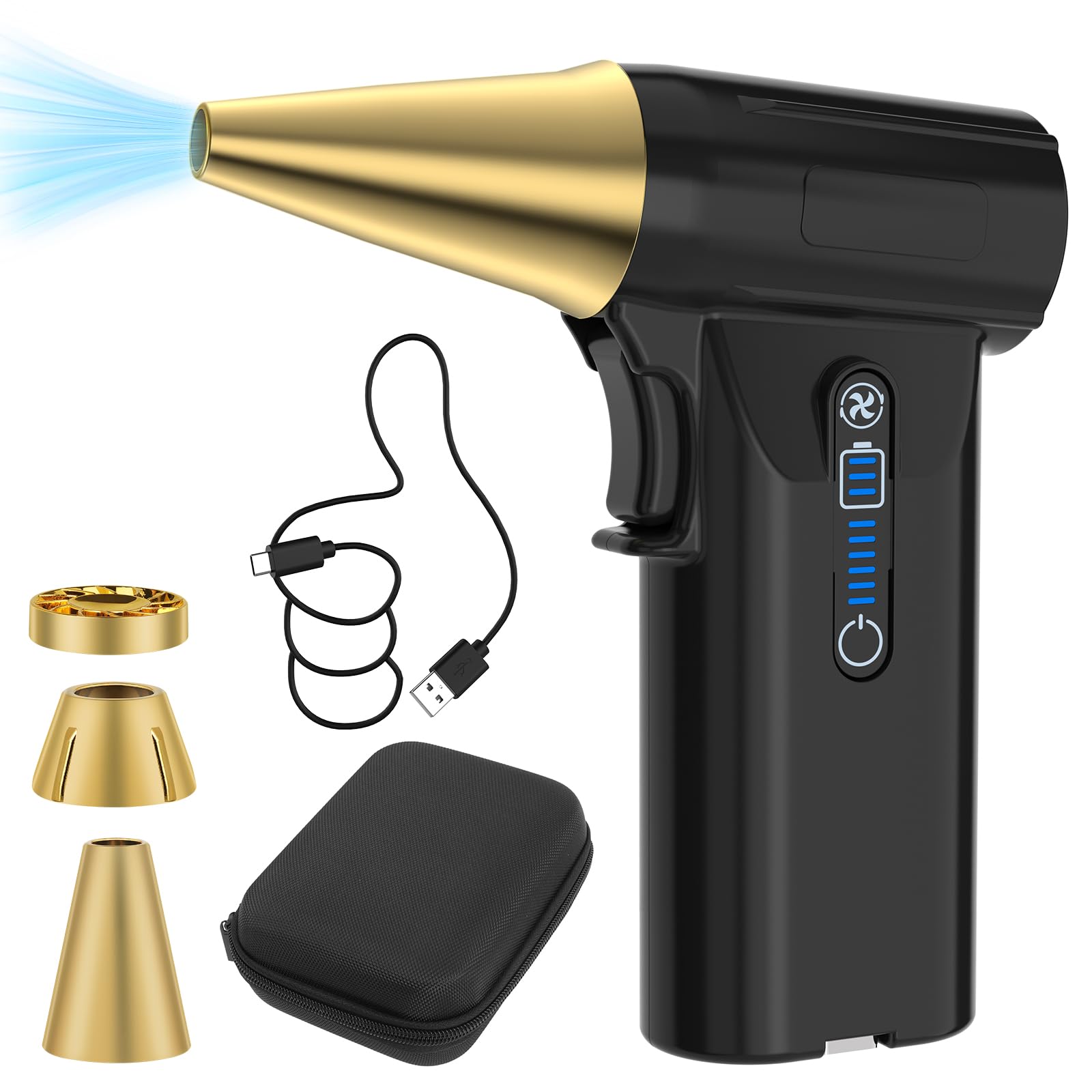 エアダスター 電動エアダスター ブロワー 小型 洗車 【85/m/sを超える暴風 180,000RPM超強風速】無段階風量調整 ブロワー 小型 小型で強力 3種類ノズル付き 5000mAh大容量バッテリー USB-C充電式 ブラシレスモーター 小型 PC掃除 コードレス 専用収納ケース付き日本語取扱説明書