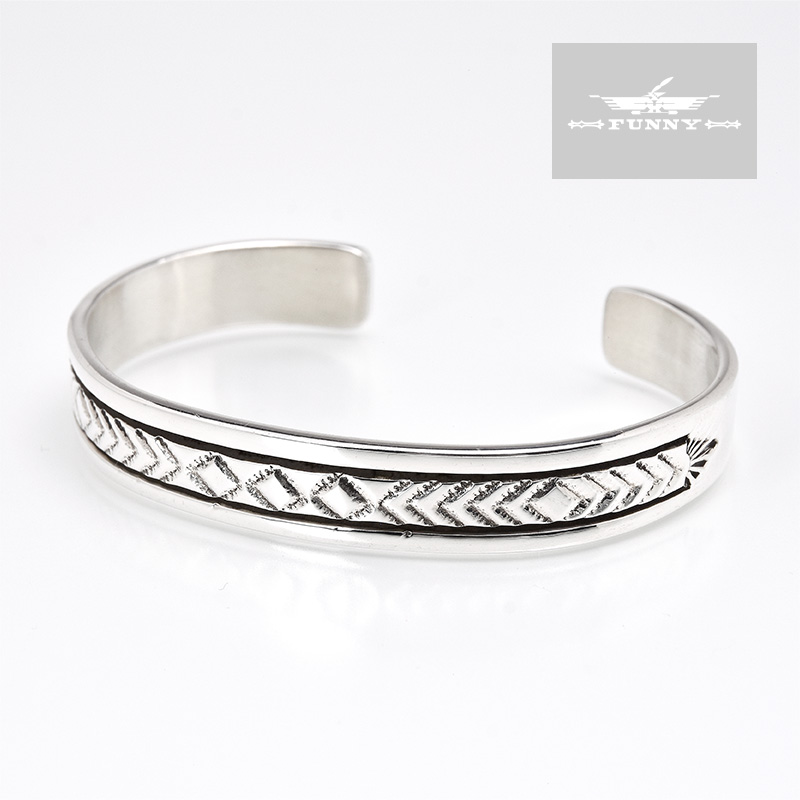 FUNNY公式ストア ナバホ族 ブルース・モーガン スタンプワーク ブレスレット インディアンジュエリー スターリングシルバー 925 バングル NAVAJO ファニー