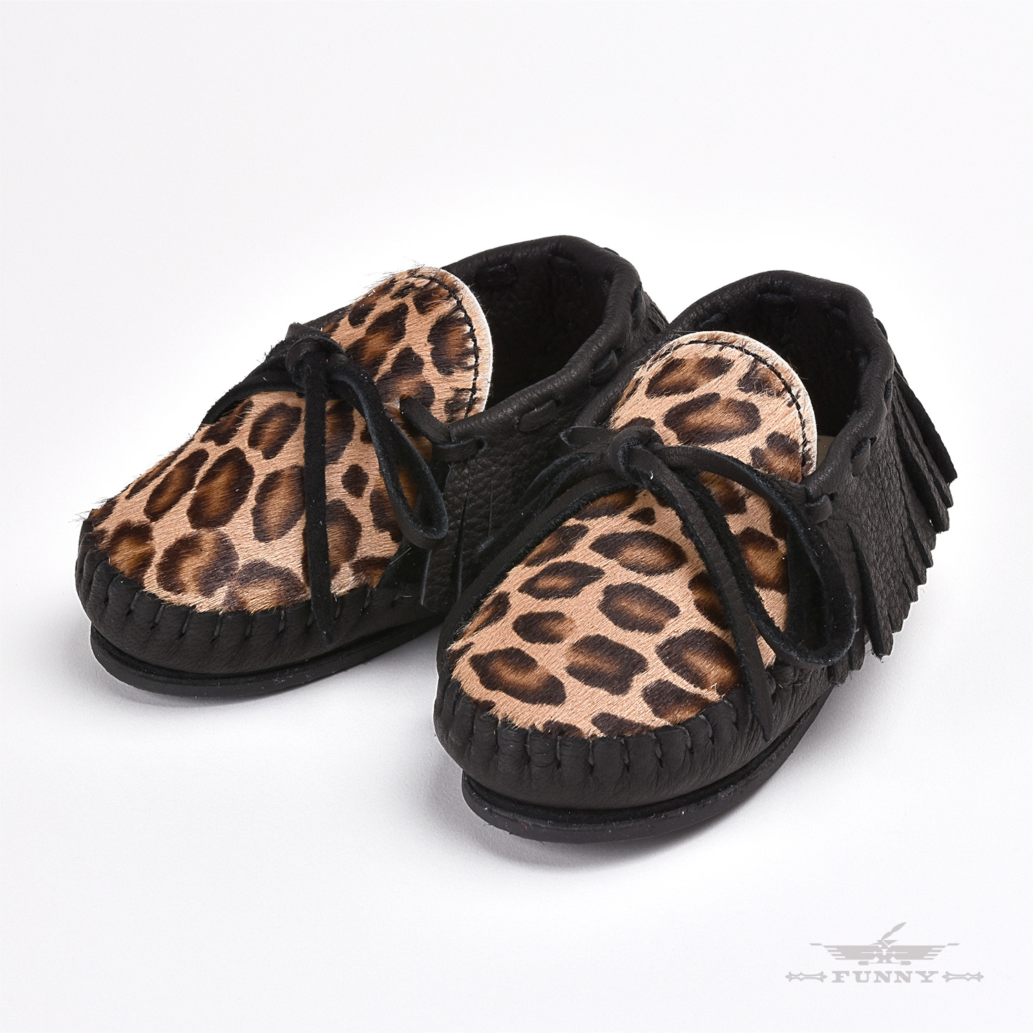 FUNNY公式ストア ファニー チャイルド フリンジブーツ ヘアカーフ レオパード 14cm 子供靴 レザー 本革 シューズ ファーストシューズ