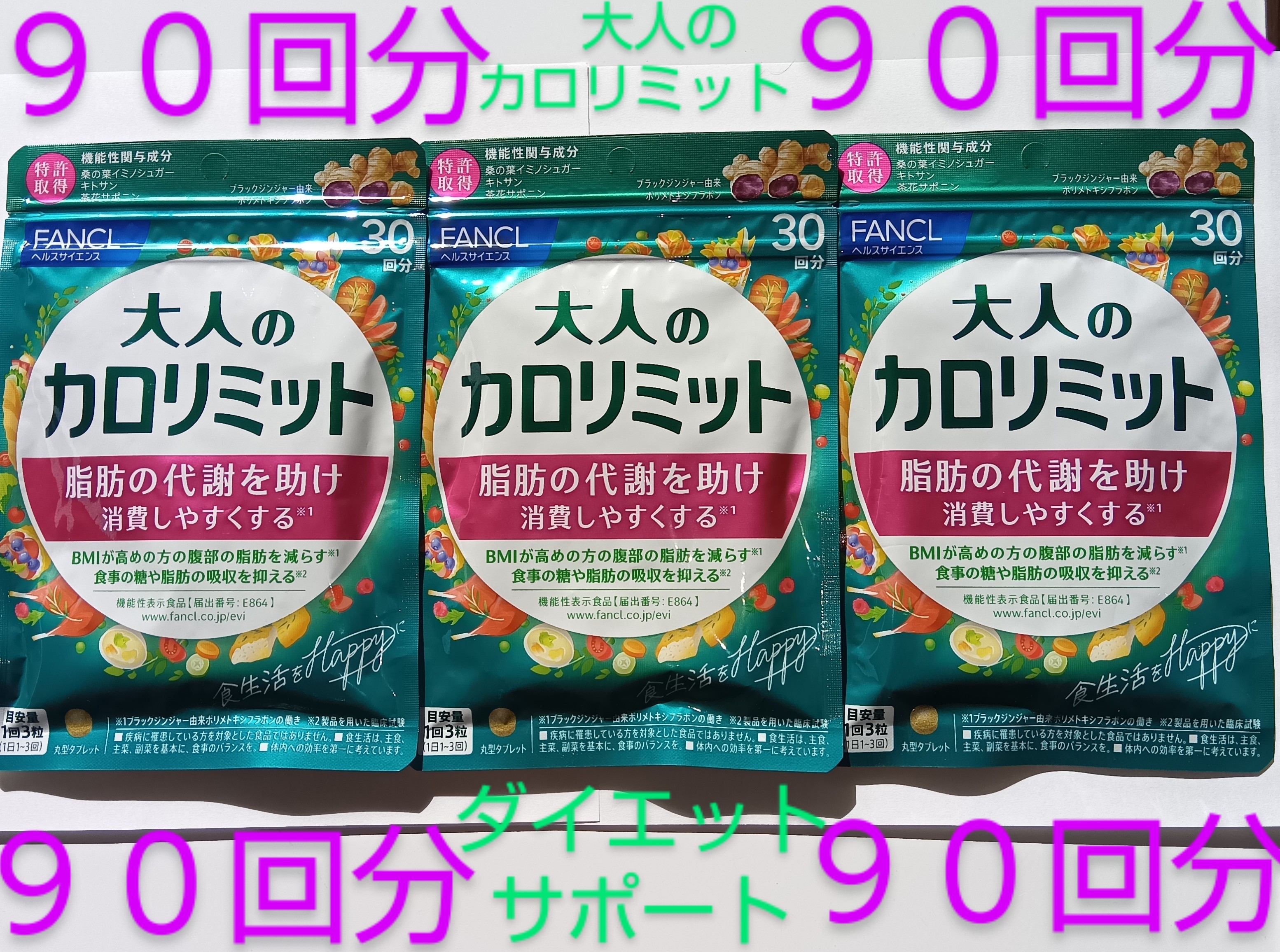 90回分大人のカロリミット 大量購入大歓迎 ダイエットサポート栄養補給サプリ 90回分ファンケル FANCL 30回分か15回分、40回分混在♪旧商品の場合あり
