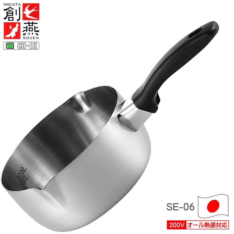 新潟県燕市は、金属加工の街として百年以上の歴史を誇り、物を創る技術は国内は勿論、世界にも広く知られております。、その技術を活かし、「極上のシリーズ創燕(そうえん)」キッチンウェアを創りました。200V電磁調理器 オール熱源対応。SG認定製品。 商品サイズ:約17.8×32.5×10cm(フタ・ハンドル含む)本体高さ:約7.5cm、箱サイズ:約33.1×17.6×9.5cm、重量:約470g、満水容量:約1.4L、 材質:本体/19-1ステンレス 板厚1.2mm、蓋/ステンレス鋼 板厚 0.7mm、蓋ツマミ/フェノール樹脂、台座/66ナイロン、ハンドル 取っ手/フェノール樹脂、原産国:日本製、個装形態:化粧箱入り、