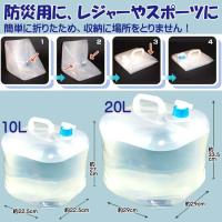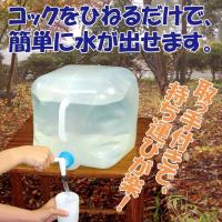 防災、レジャー、スポーツなど、様々な場面で活躍するウォータータンクです。簡単に折りたため、収納に場所をとりません。コックをひねるだけで、簡単に水が出せます。材質/本体:PE・コック部:PP(白)・コック部:PP(青)・コック部:LDPE(白色半透明)、商品サイズ・重量/サイズ:(約)29×29×33.5cm 重量:(約)285g、