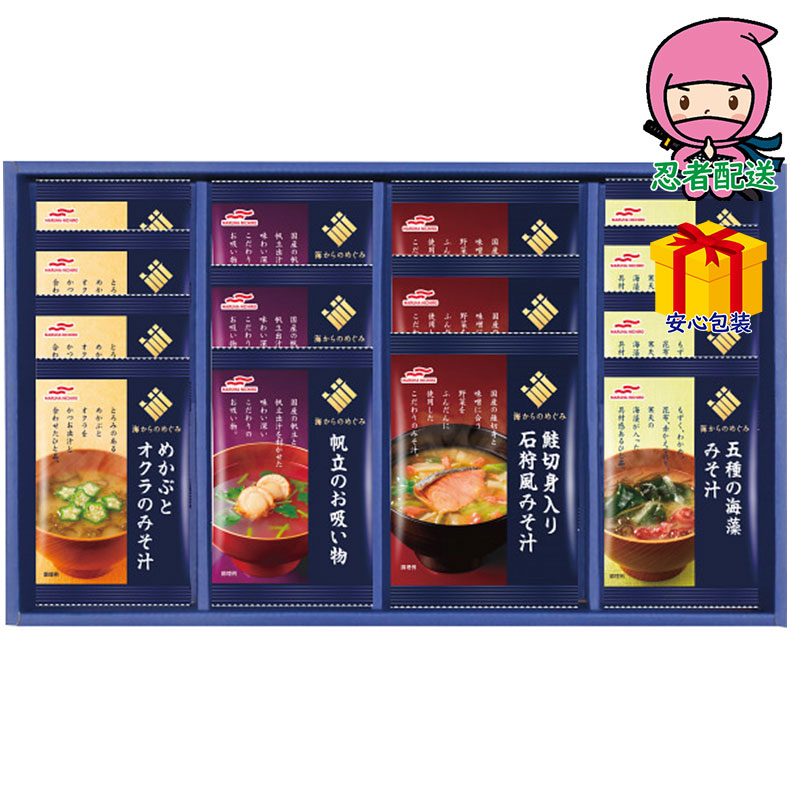 ●鮭切り身入り石狩風みそ汁×3、帆立のお吸い物×3、めかぶとオクラのみそ汁×4、五種の海藻みそ汁×4(計14食)(フリーズドライ)