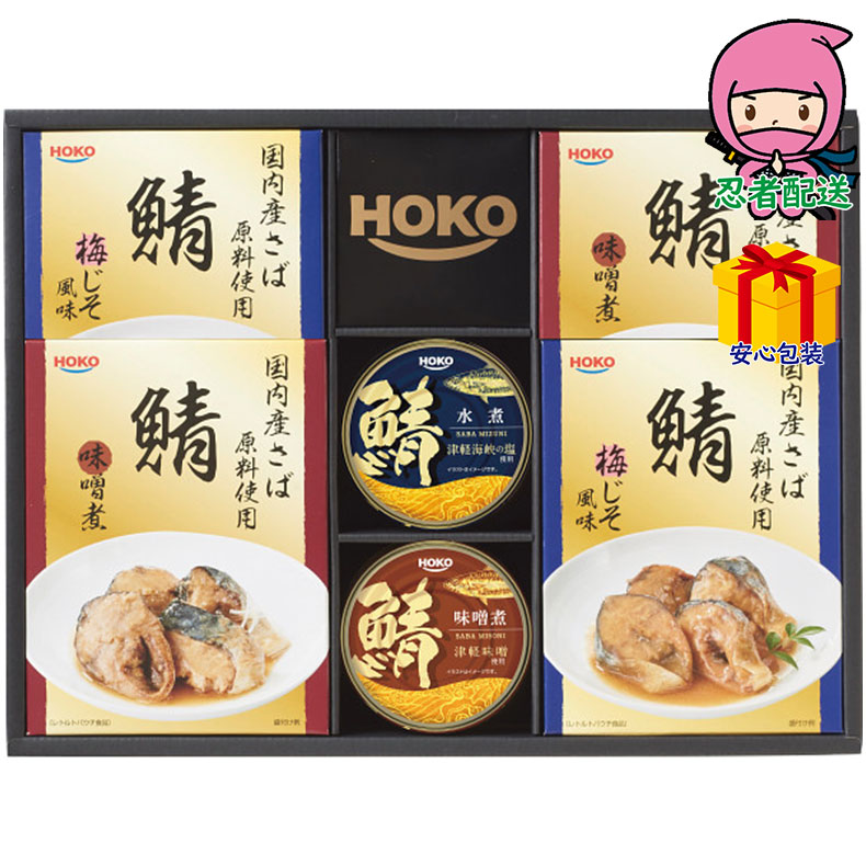 ●鯖水煮 津軽海峡の塩使用(F2)200g×1、鯖味噌煮 津軽味噌使用(F2)200g×1、ギフト用レトルト鯖梅じそ風味90g×2、ギフト用レトルト鯖味噌煮90g×2