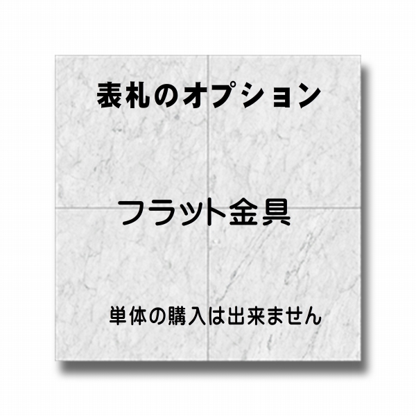 | ※注意事項 表札の使用ビスの数により、必要個数が変わってきます。 正方形タイプの表札に4個ビスが使われている場合には、4個ご購入下さい。 長方形タイプでビスが2個使用されている場合には、2個のご購入になります。 フラット金具をご注文のお客様は、標準金具は付属しませんのでご注意下さい。 |